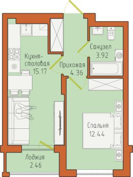 Однокомнатная квартира 79 на четвёртом этаже у Балтийского моря в Светлогорске.