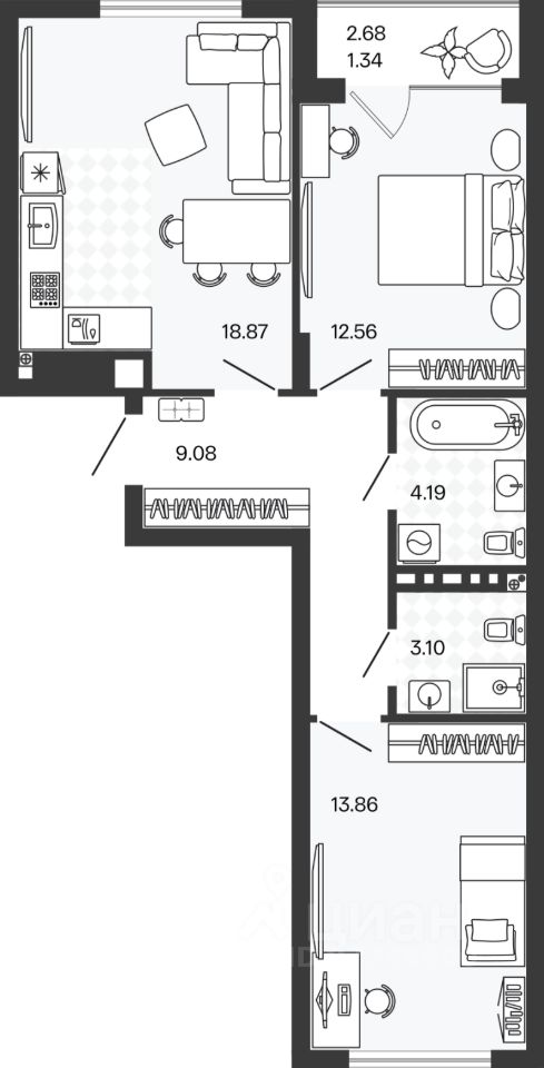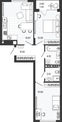 Площадь кухни18,9 м²