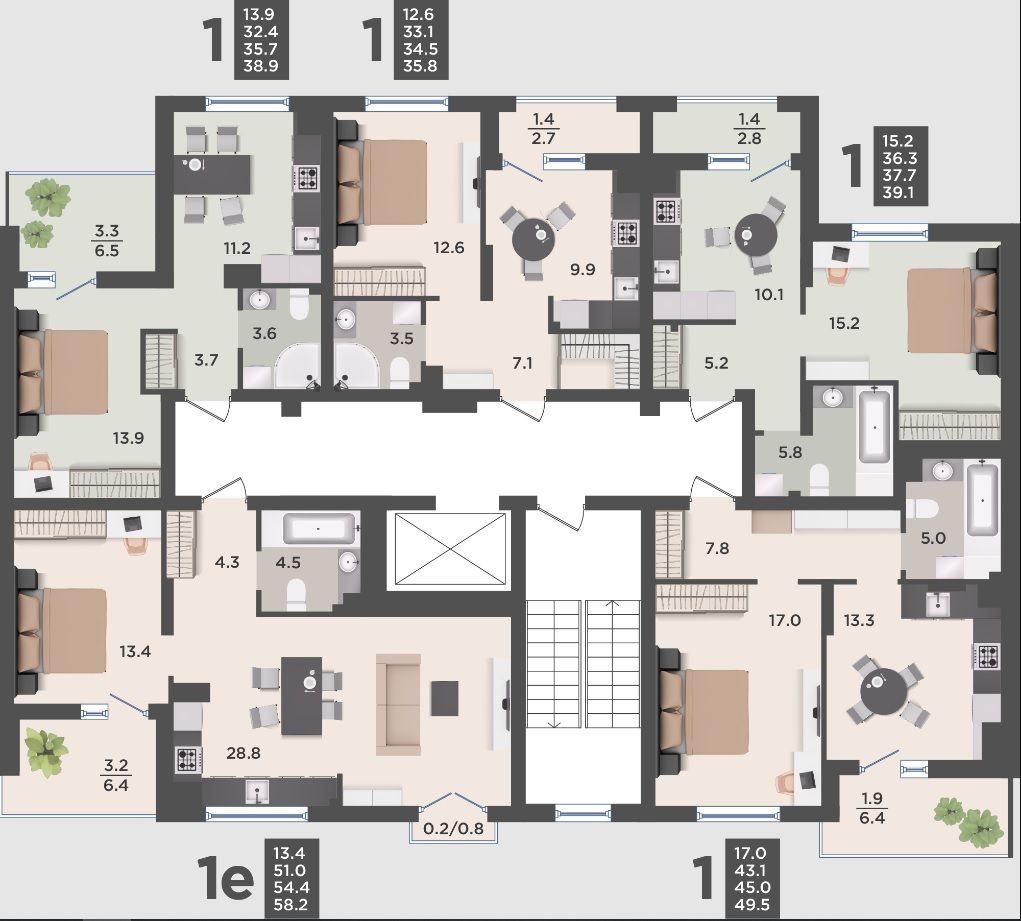 Эргономичные и продуманные планировки с просторными кухнями-гостиными и гардеробными, системами хранения, мастер-спальнями.