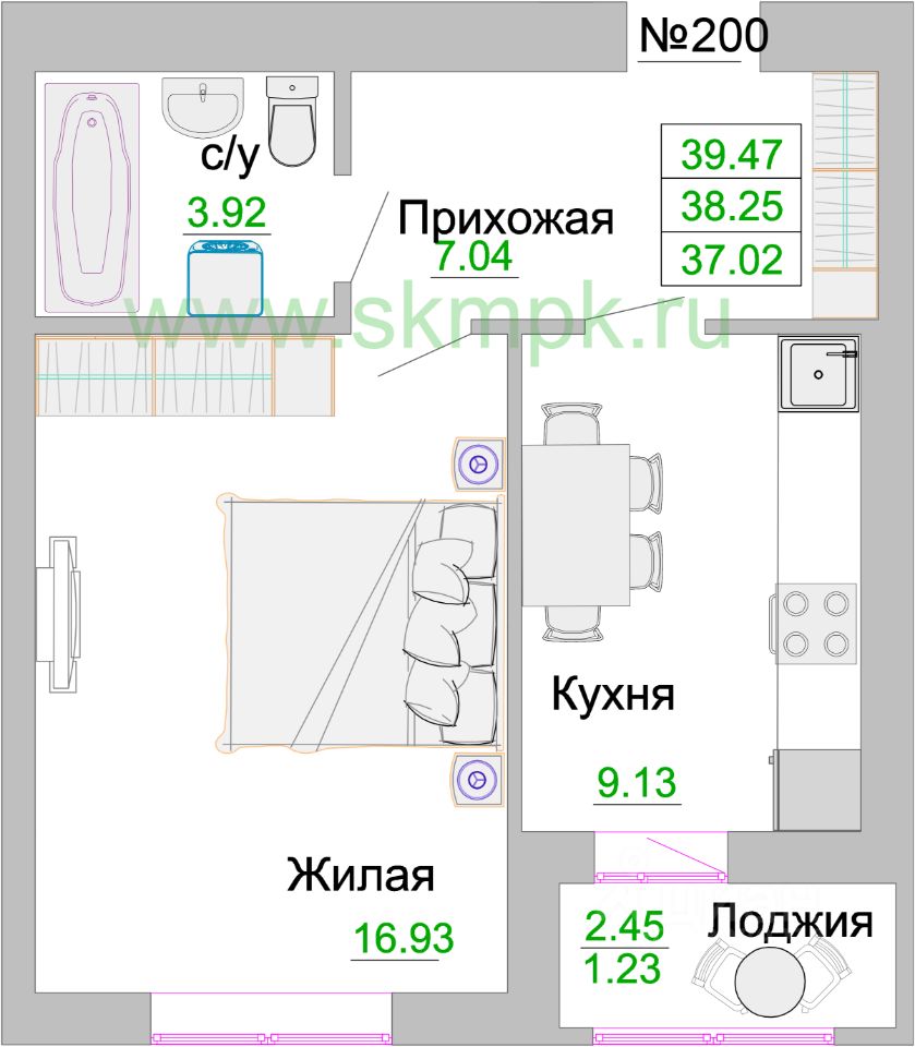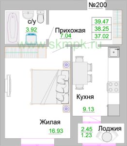 Общая площадь38,6 м²