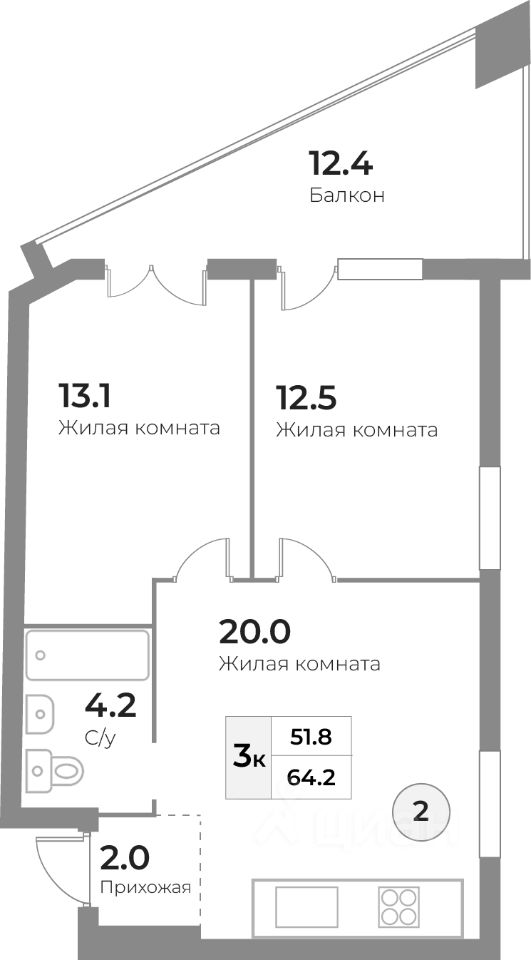 Общая площадь63,3 м²