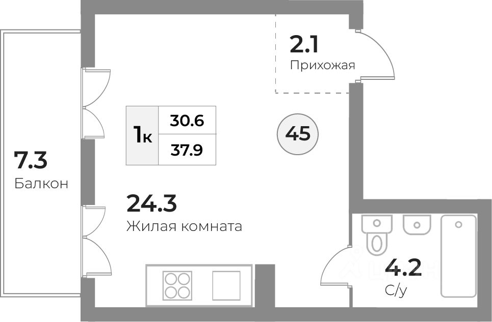 Общая площадь37,9 м²