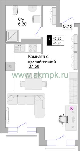 Продаются 1-комнатные апартаменты номер 22 в Жилом комплексе "Апартаменты на Гагарина".