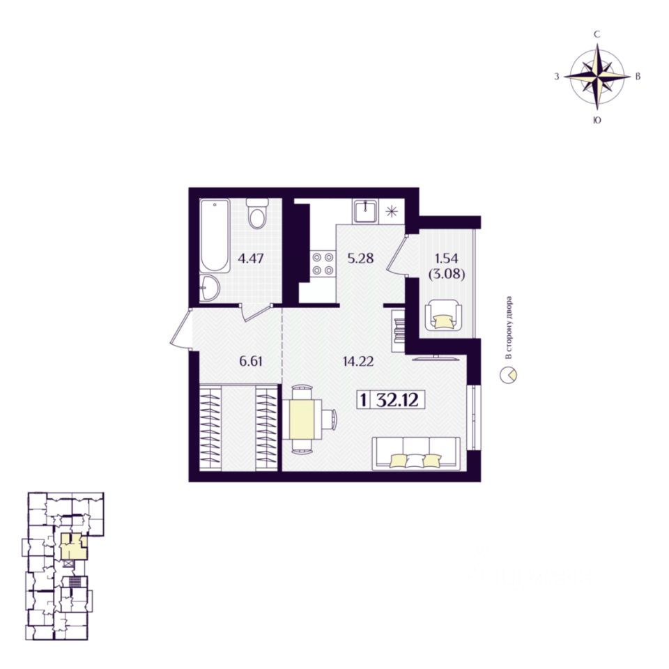 Общая площадь32,12 м²