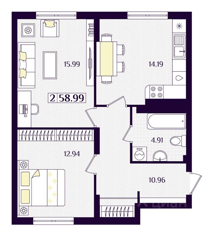 Общая площадь58,99 м²