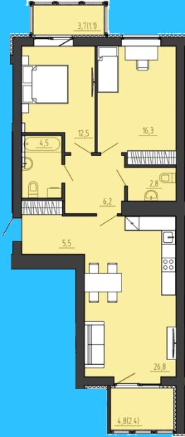 Продаётся 2-комнатная квартира в строящемся доме (Дом 3), срок сдачи: I-кв. 2026, общей площадью 83.1 кв.м., на 5 этаже. Новый жилой комплекс "Дома у сада" от Специализированного застройщика "А Плюс" расположен в г. Калининград на ул. Толстикова.