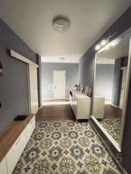 Квартира находится на 3 этаже 9 этажного корпуса. Высота потолков 2,7 метра. Две просторные комнаты 19,2 и 15,0 м2 (с гардеробными). Комнаты на две разные стороны, окна одной выходят на город, другой спальни на тихий двор. Кухня 11,1 м2, санузел совмещенный 4,6 м2, большой коридор 12,2 м2, лоджия 1,8 м2 (выход из комнаты).
