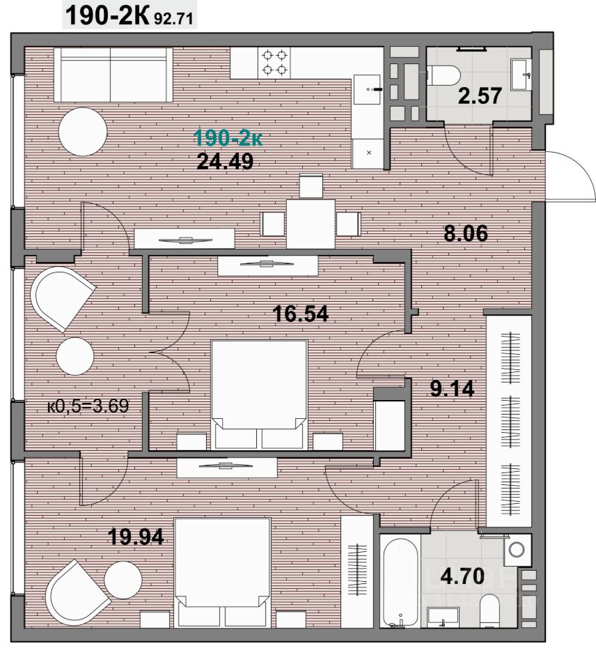 Продаётся 2-комнатная квартира в строящемся доме (Дом 1, секция 5), срок сдачи: IV-кв. 2027, общей площадью 88.6 кв.м., на 4 этаже. Новый жилой комплекс "Морская лагуна" от Специализированного застройщика "БСК" расположен в г. Зеленоградск на ул. Гагарина.