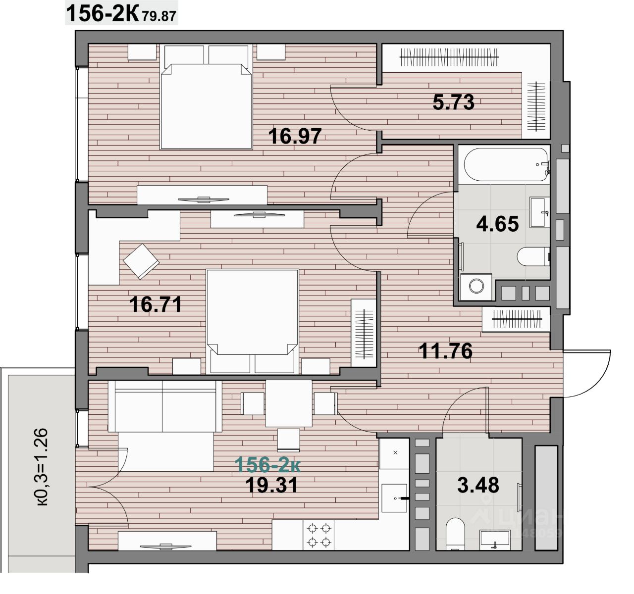 Продаётся 2-комнатная квартира в строящемся доме (Дом 1, секция 4), срок сдачи: IV-кв. 2027, общей площадью 79.87 кв.м., на 2 этаже. Новый жилой комплекс "Морская лагуна" от Специализированного застройщика "БСК" расположен в г. Зеленоградск на ул. Гагарина.