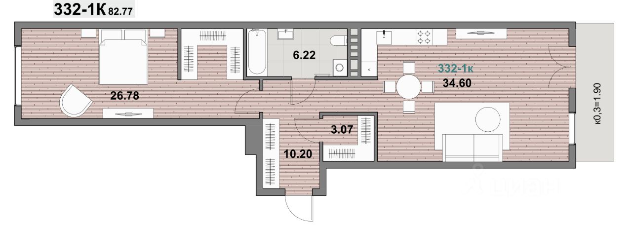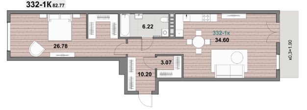 Продаётся 1-комнатная квартира в строящемся доме (Дом 1, секция 10), срок сдачи: IV-кв. 2027, общей площадью 82.77 кв.м., на 2 этаже. Новый жилой комплекс "Морская лагуна" от Специализированного застройщика "БСК" расположен в г. Зеленоградск на ул. Гагарина.