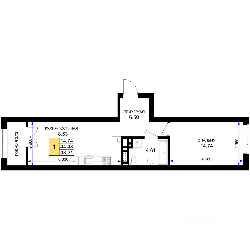 Продаётся 1-комнатная квартира в строящемся доме (Дом 6 (2 очередь)), срок сдачи: I-кв. 2027, общей площадью 48.21 кв.м., на 6 этаже. Новый жилой комплекс "Включи" от застройщика "СпецСтройКубань" расположен в г. Гурьевск в районе Гурьевского шоссе.