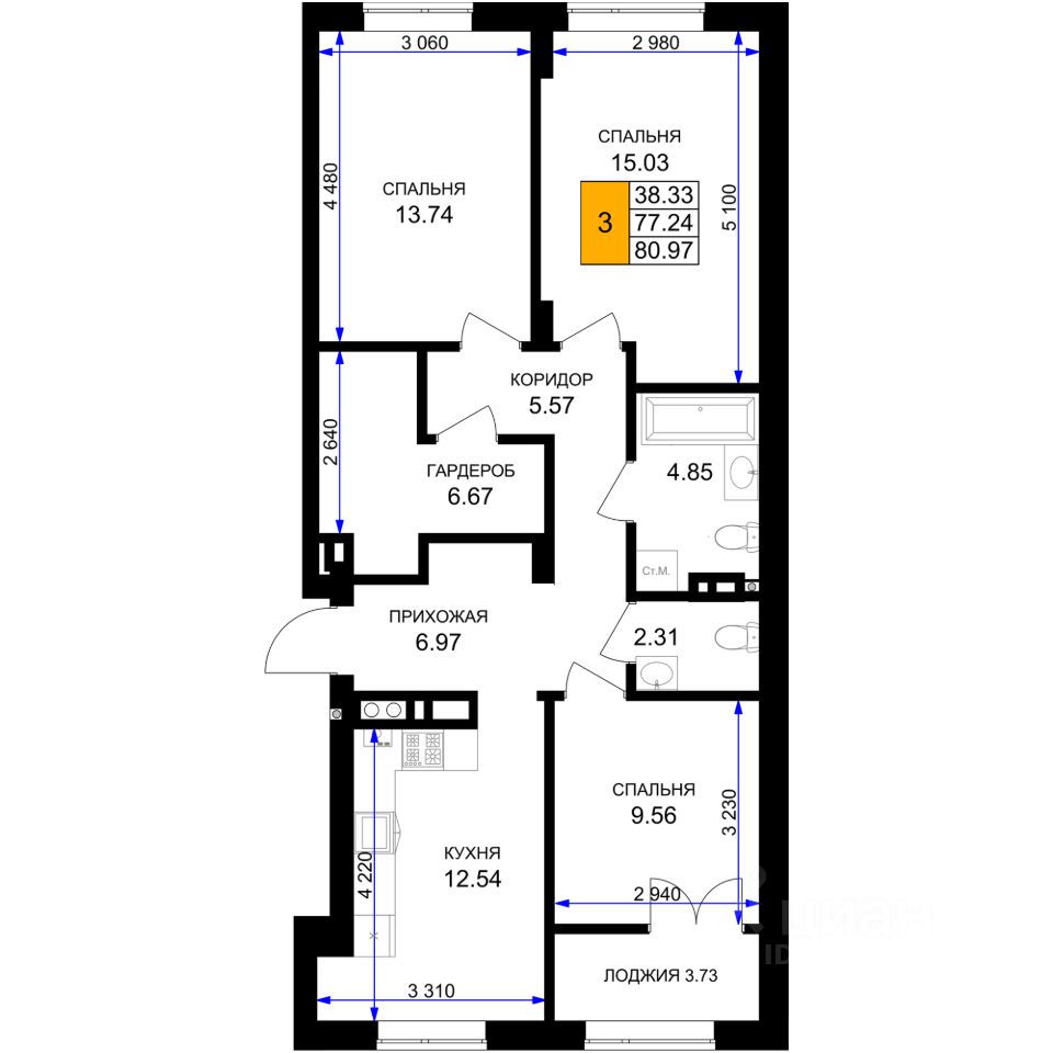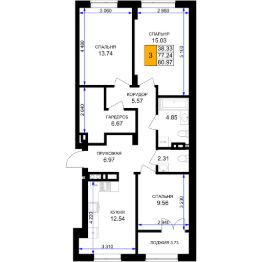 Продаётся 3-комнатная квартира в строящемся доме (Дом 6 (2 очередь)), срок сдачи: I-кв. 2027, общей площадью 80.97 кв.м., на 7 этаже. Новый жилой комплекс "Включи" от застройщика "СпецСтройКубань" расположен в г. Гурьевск в районе Гурьевского шоссе.