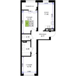 Продаётся 2-комнатная квартира в строящемся доме (Дом 6 (2 очередь)), срок сдачи: I-кв. 2027, общей площадью 62.36 кв.м., на 6 этаже. Новый жилой комплекс "Включи" от застройщика "СпецСтройКубань" расположен в г. Гурьевск в районе Гурьевского шоссе.