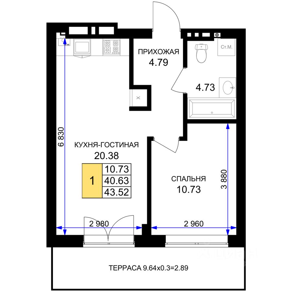 Продаётся 1-комнатная квартира в строящемся доме (Дом 6 (2 очередь)), срок сдачи: I-кв. 2027, общей площадью 43.52 кв.м., на 1 этаже. Новый жилой комплекс "Включи" от застройщика "СпецСтройКубань" расположен в г. Гурьевск в районе Гурьевского шоссе.