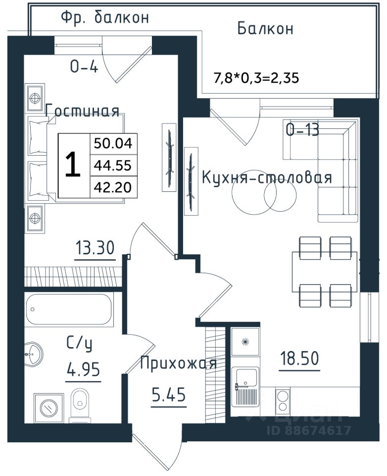50,04 м²