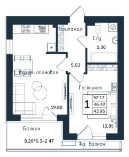 Продаётся 1-комнатная квартира в строящемся доме (Дом 1), срок сдачи: II-кв. 2026, общей площадью 52.17 кв.м., на 5 этаже. Новый жилой комплекс "Янтарные Сезоны" от Группы компаний "Модуль-Стройград" расположен по адресу: Калининградская обл., пгт Янтарный, ул. Советская.
