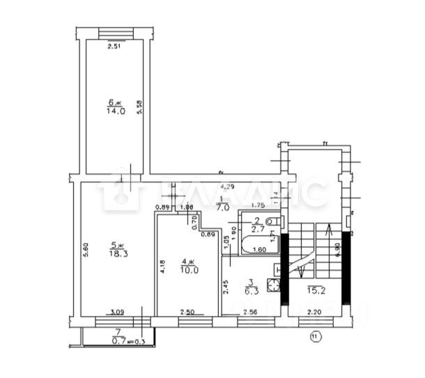 Площадь комнат - 14 кв.м + 18.3 кв.м + 10 кв.м