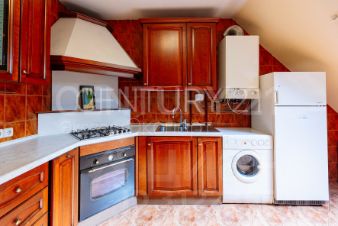 На первом уровне просторная кухня , гостиная с выходом на балкон , спальня и раздельный санузлы, на втором большая мансардная комната с настоящим камином, санузел и кладовая. Все очень чистое ухоженное.