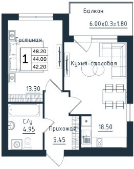 Общая площадь48,2 м²