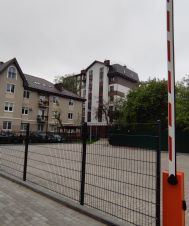— Наземная парковка, въезд со шлагбаумом, огороженная территория.