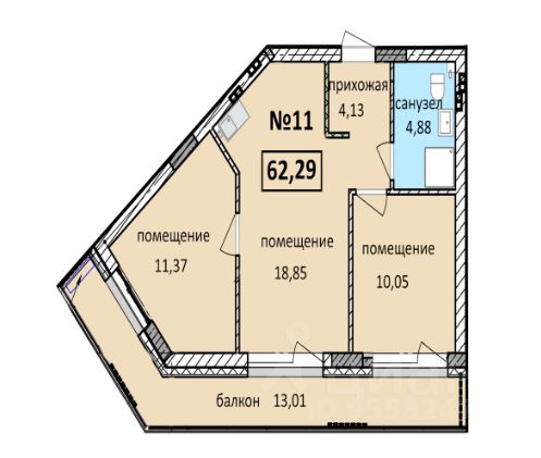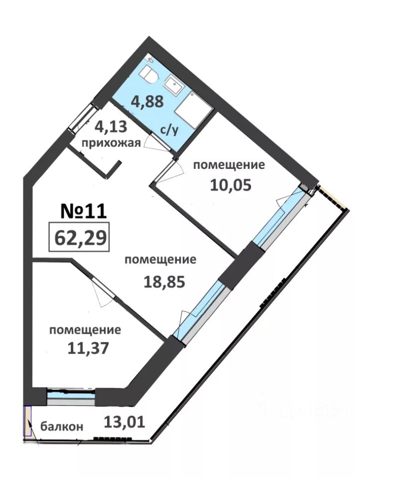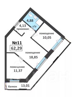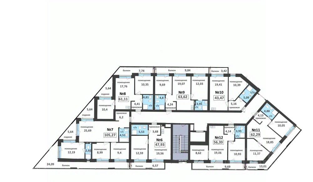 Апартаменты площадью от 29.84 до 114.47 кв.м.
