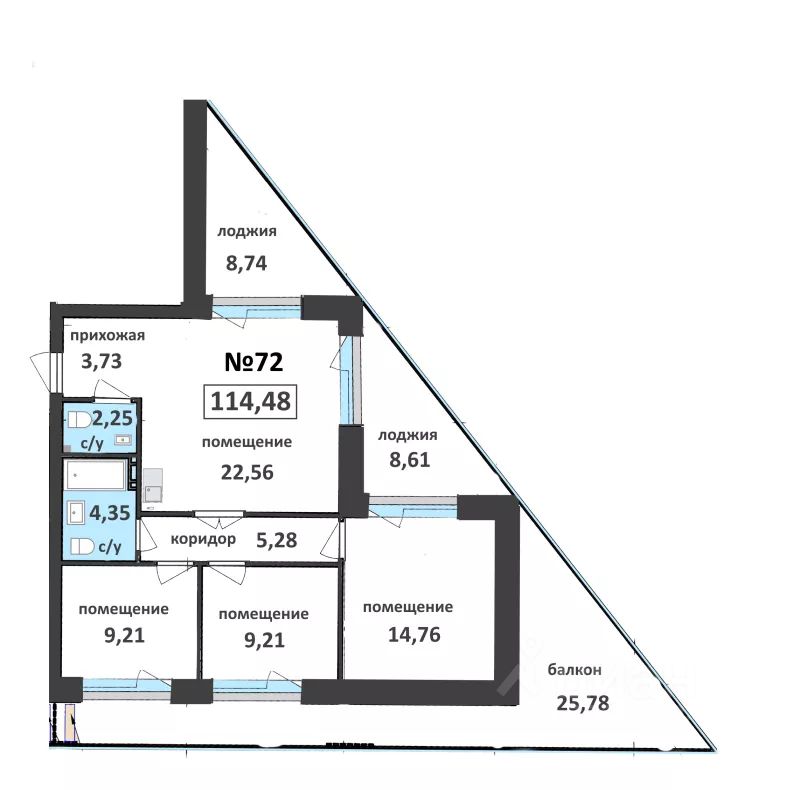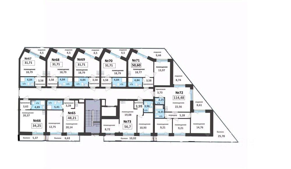 Апартаменты площадью от 29.84 до 114.47 кв.м.