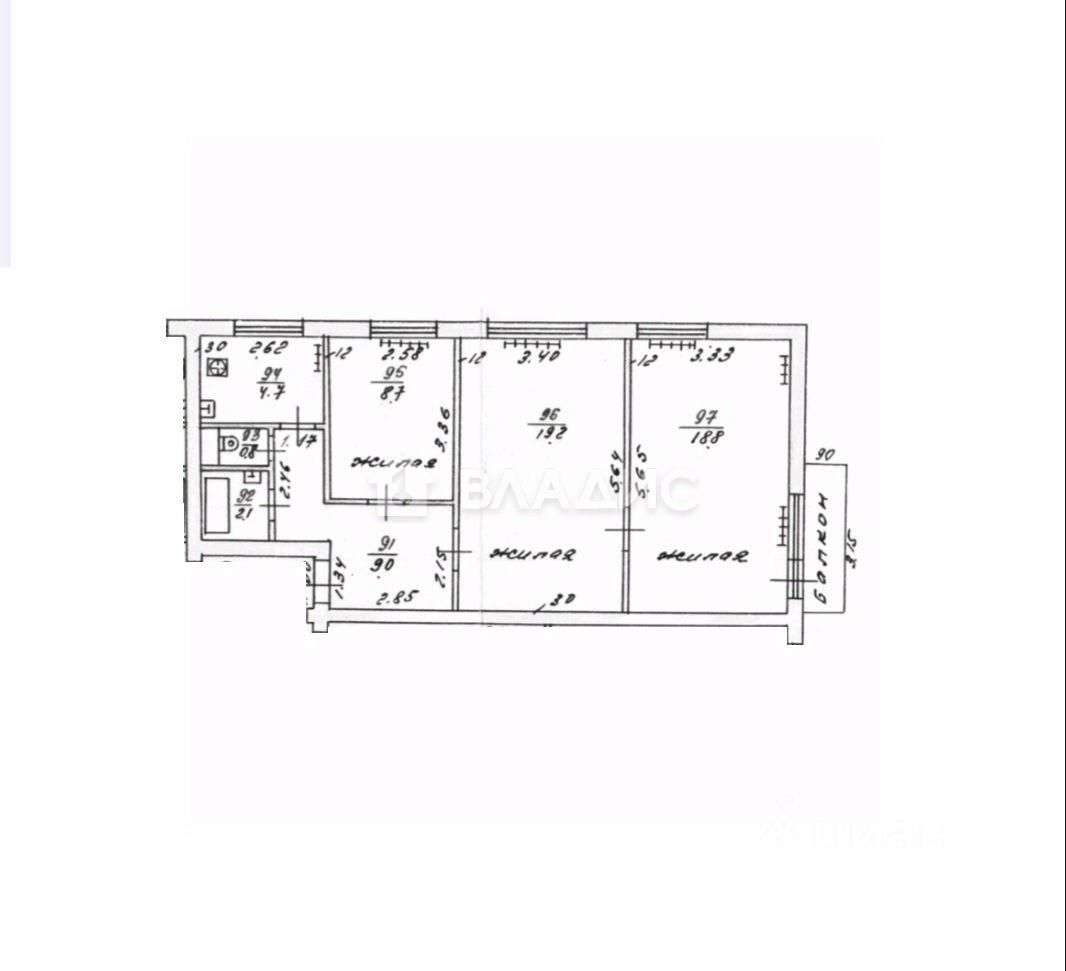 Общая площадь квартиры - 63.3 кв.м