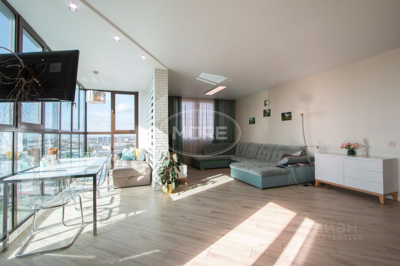 Квартира расположена на 16-ом этаже. В квартире кухня-гостиная (45 м²), 3 изолированные спальни (15,7 + 11,7 + 13,7 м²) так же в одной из спален есть гардеробная (4,3 м²),2 сан.узла (2,5 + 5,1 м²).