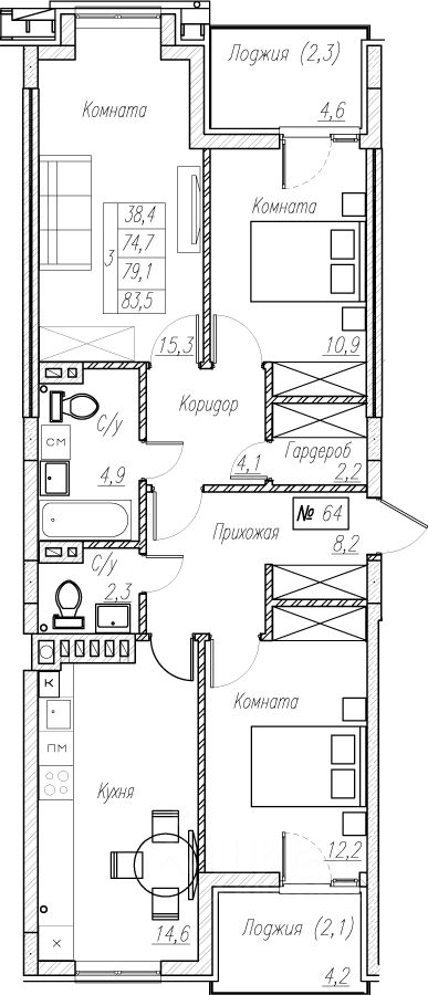 Продаётся 3-комнатная квартира в строящемся доме (Дом 1), срок сдачи: I-кв. 2026, общей площадью 79.1 кв.м., на 5 этаже. Новый жилой комплекс "Симфония моря" от Группы компаний "Модуль-Стройград" расположен по адресу: Калининградская об., г. Пионерский, ул. Прибрежная.