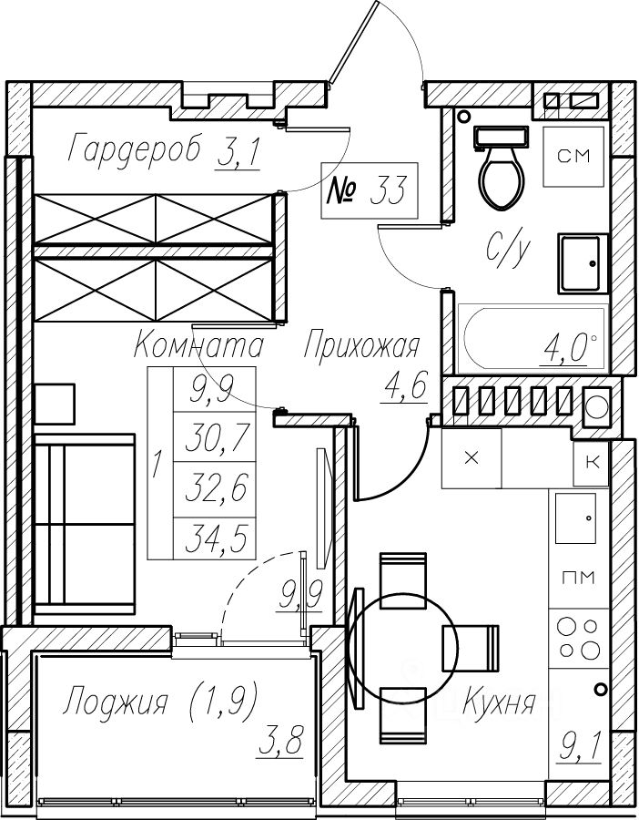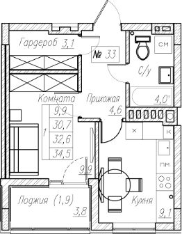 32,6 м²