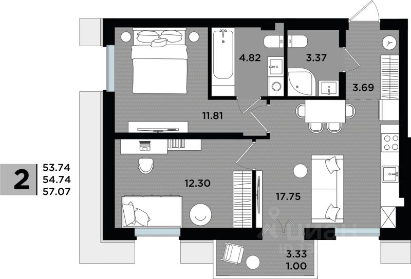 В проекте представлены 1, 2, 3 -комнатные и двухуровневые квартиры различной площади.