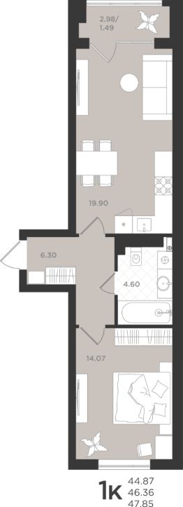 Продается 1-комн. квартира, 46,37 м²