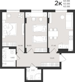 Продается 2-комн. квартира, 67,08 м²