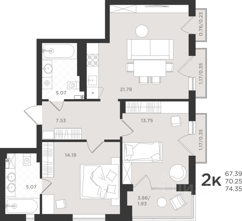 Продается 2-комн. квартира, 70,31 м²