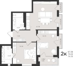 Общая площадь70,31 м²