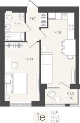 Общая площадь42,53 м²