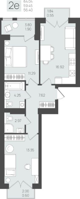 Общая площадь58,3 м²