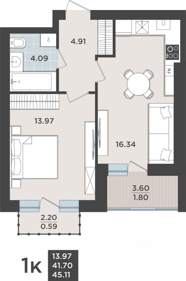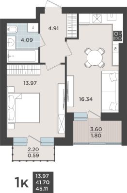 Продаётся 1-комнатная квартира в строящемся доме (Дом 2.1 очередь 1), срок сдачи: IV-кв. 2026, общей площадью 41.11 кв.м., на 5 этаже. Жилой квартал "Невский парк" - один из самых зеленых жилых кварталов Калининграда.