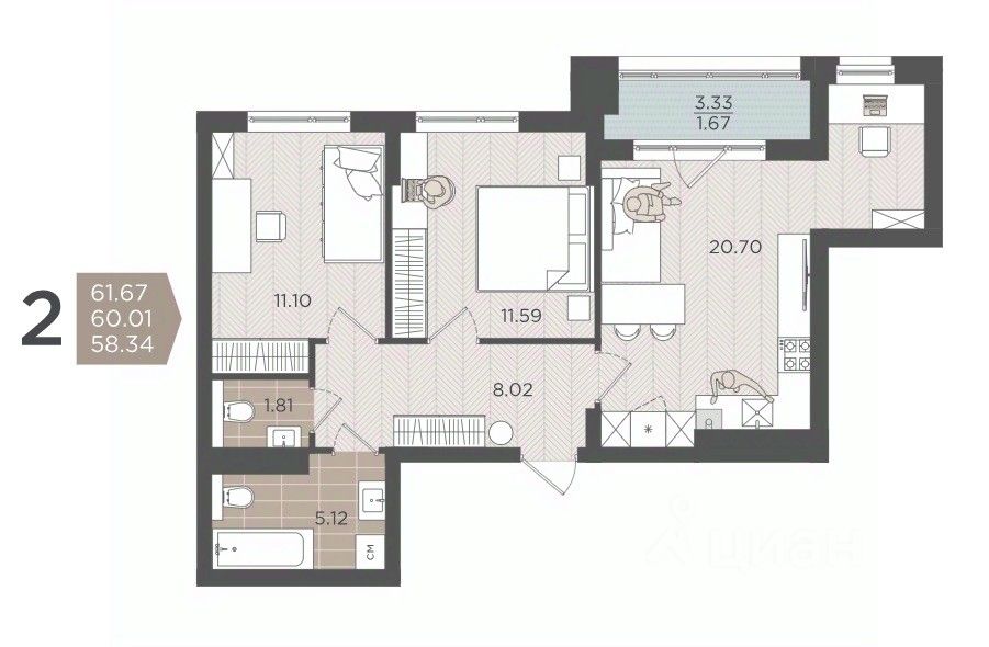Общая площадь60,1 м²