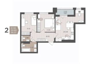 Общая площадь59,9 м²