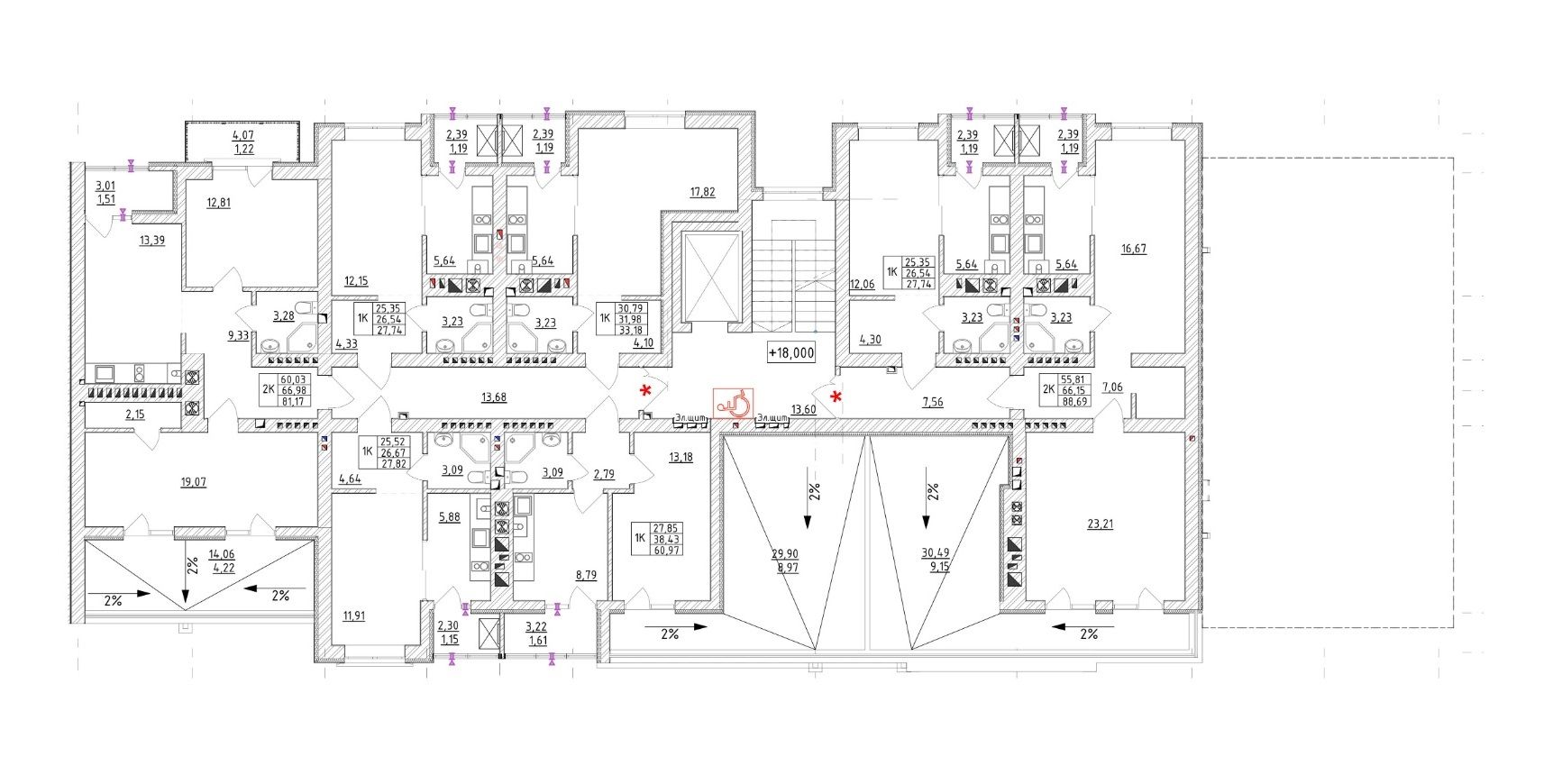 • Отделка "серый ключ" - коммуникации спрятаны, стены оштукатурены, полы залиты