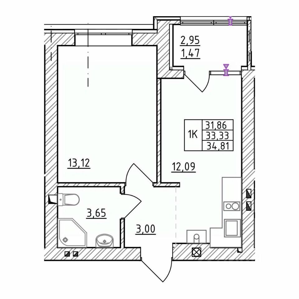 • Отделка "серый ключ" - коммуникации спрятаны, стены оштукатурены, полы залиты
