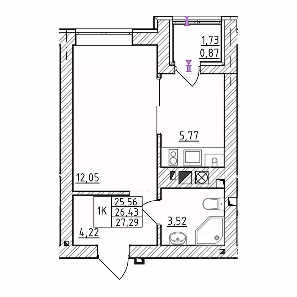 • Отделка "серый ключ" - коммуникации спрятаны, стены оштукатурены, полы залиты