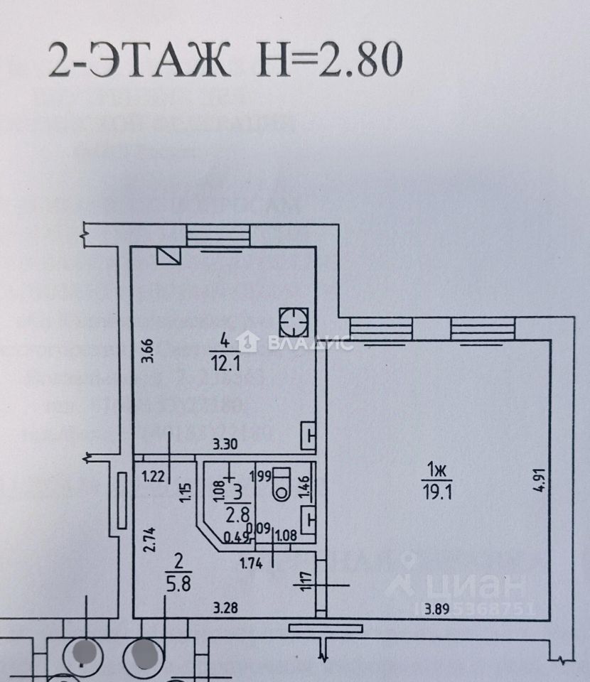 Комната 19,1 квадратных метра и кухня площадью 12,1 квадратных метра обеспечивают отличную функциональность и зонирование. Высота потолков 2,8 метра визуально ещё больше увеличивает пространство и создаёт ощущение лёгкости.
