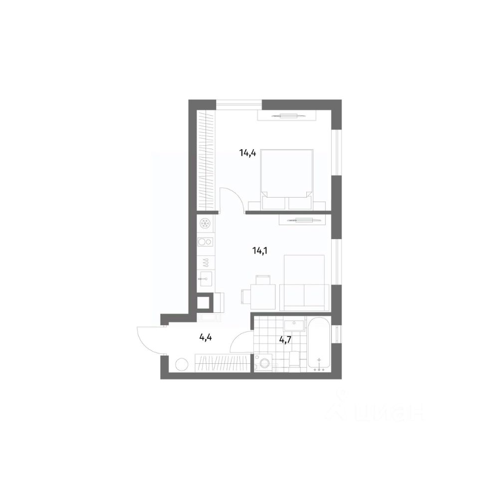 Жилая площадь14,4 м²