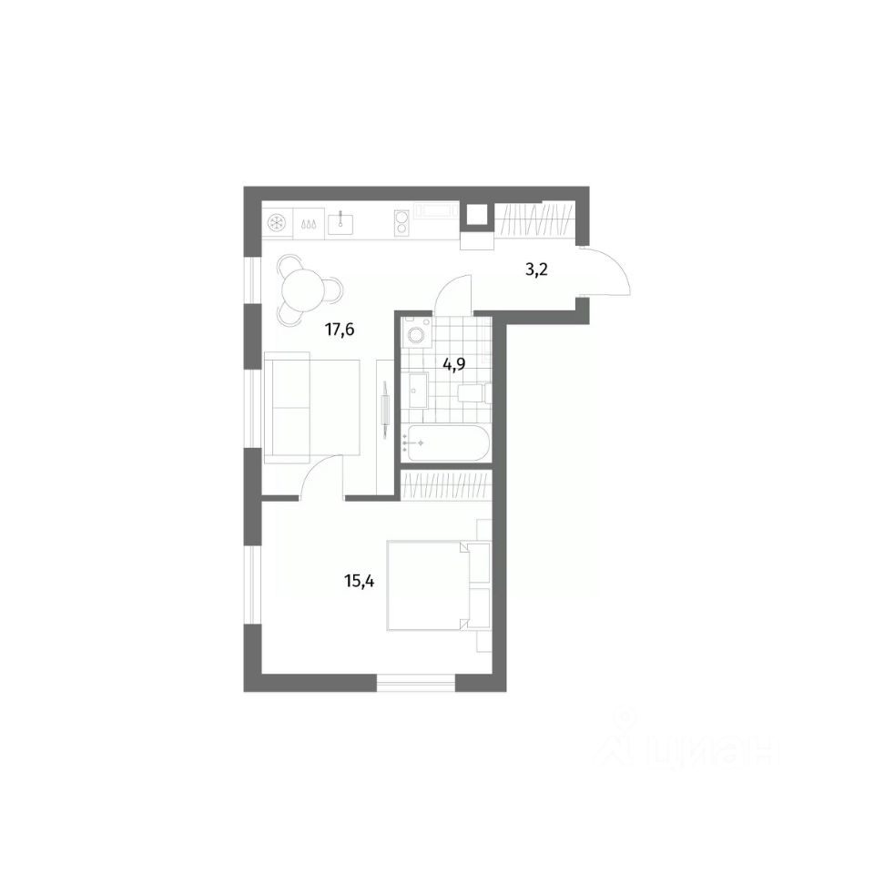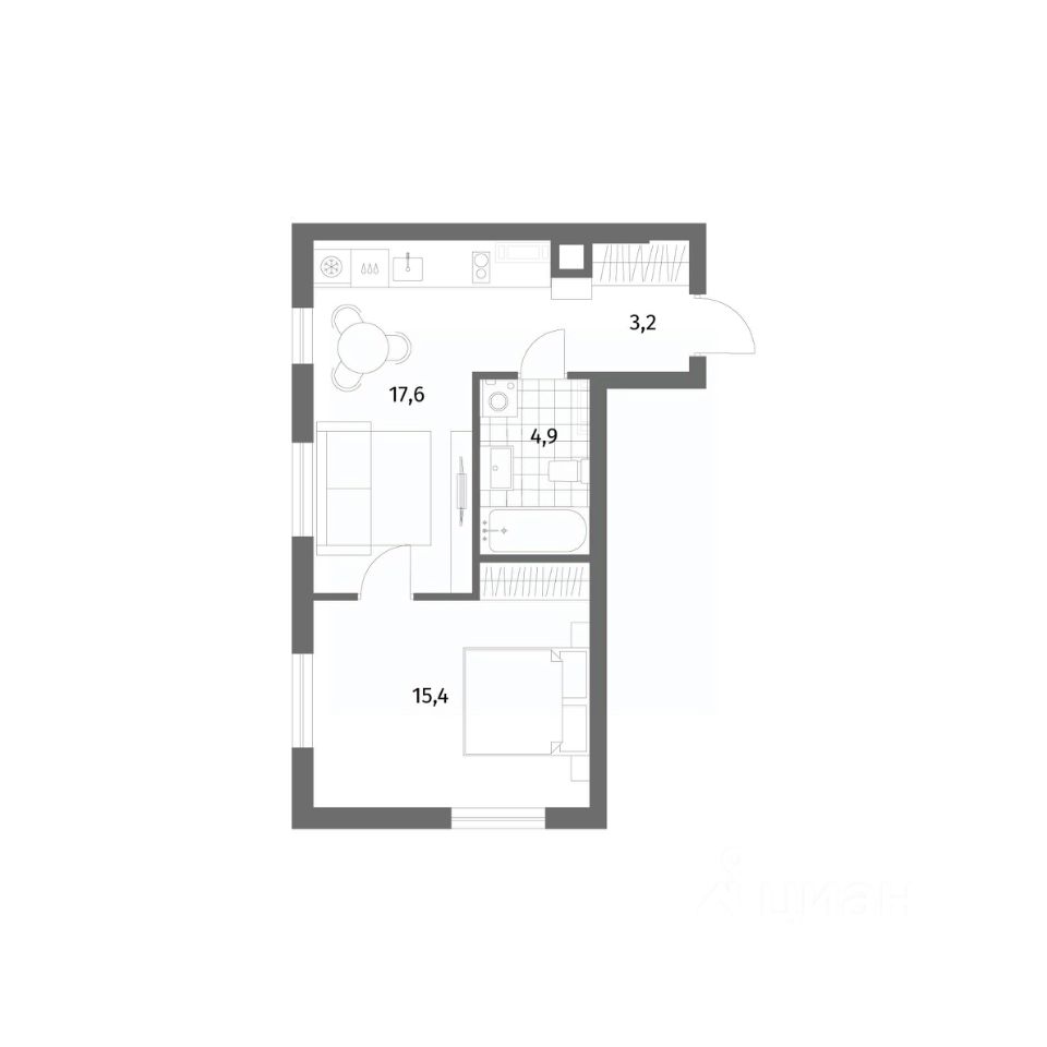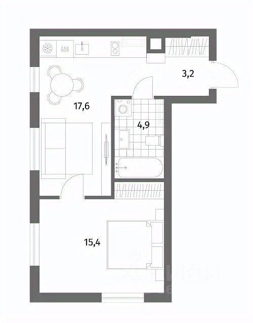 15,4 м²