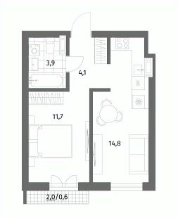 16,6 м²
