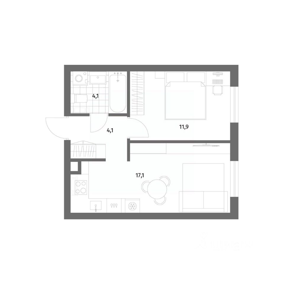 17,1 м²