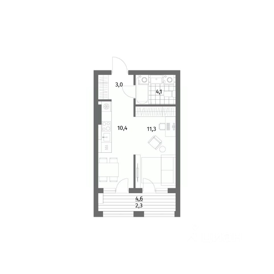 Жилая площадь11,3 м²