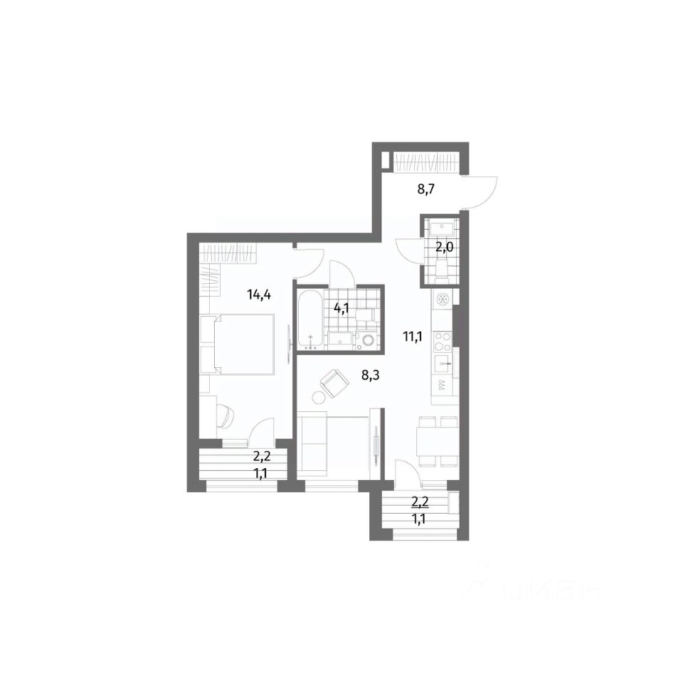 Продается квартира площадью 50.8 м² на 1 этаже 1 секции в River Park от компании ГК "ТРЕСТ". Площадь кухни 11.1 м².